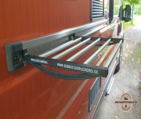 DER Handtuchhalter V2 ist die ideale Lösung zum platzsparenden Trocknen von Handtüchern an deinem Reisemobil, Wohnwagen oder Dachzelt-Camper KFZ – perfekt für Fahrzeuge von Pössl, Sunlight, Bürstner und Co.