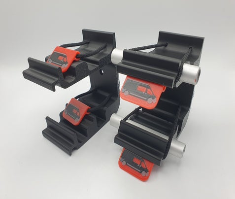 - Saugnapfadapter zur Befestigung an voll- und teilintegrierten Wohnmobilen sowie an Campster-Modellen oder KFZ von Dachzelt-Campern ohne geeignete Schiebetürschiene – alternativ auch zur Montage außerhalb der Schiebetürführung an Campervans.